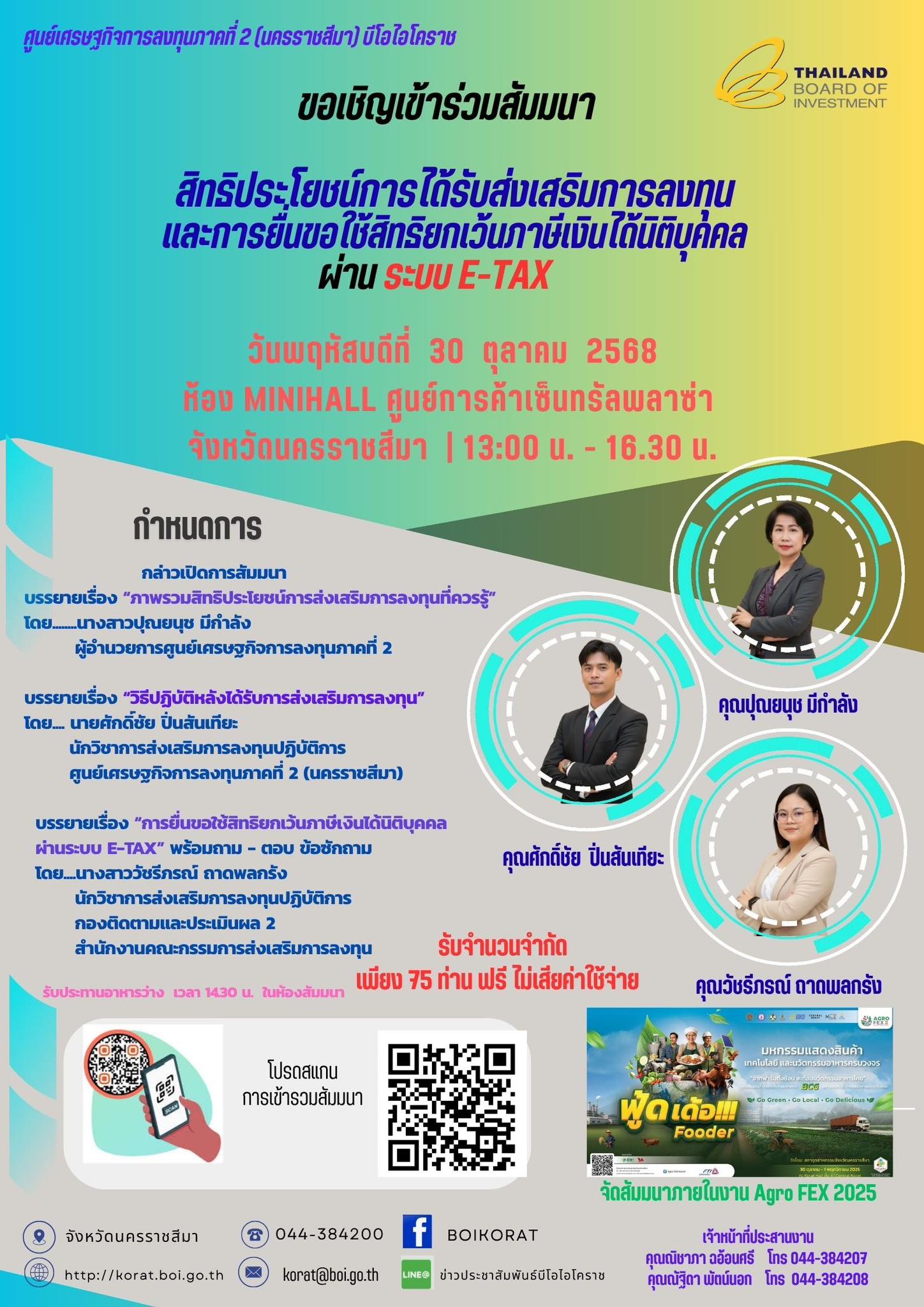 บีโอไอ ศูนย์ฯภาค 2 นครราชสีมา ขอเชิญเข้าร่วมกิจกรรมสัมมนา