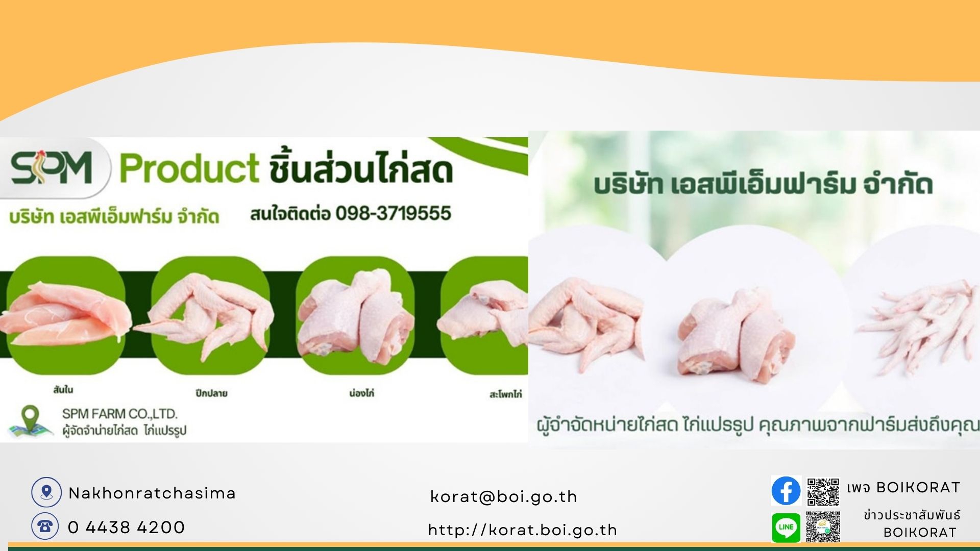 เจ้าหน้าที่ BOIKORAT เข้าตรวจเยี่ยมและตรวจเปิดดำเนินการบริษัท เอสพีเอ็มฟาร์ม จำกัด (SPM Farm) จ.นครราชสีมา โครงการผลิตเนื้อไก่ชำแหละครบวงจรที่ทันสมัย