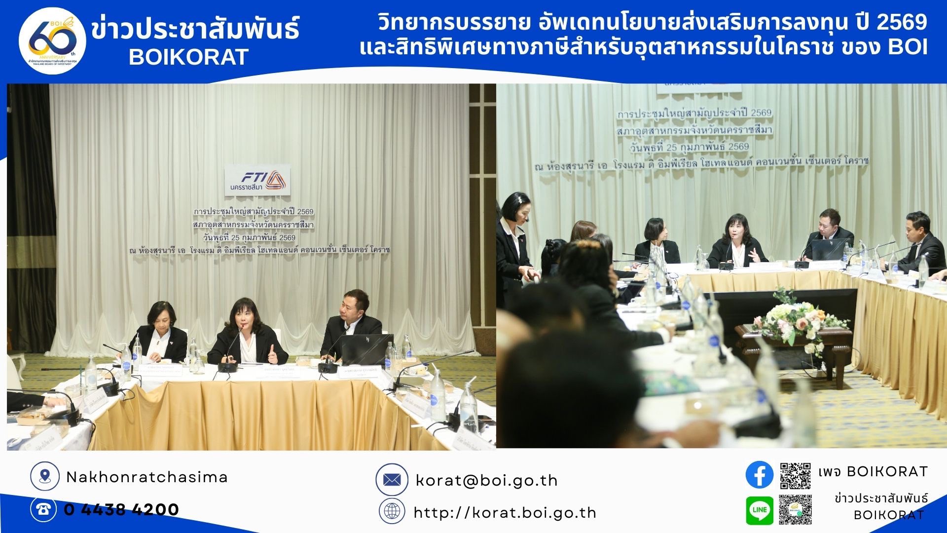25 กุมภาพันธ์ 2569#BOIโคราช ร่วมยินดีประธานสภาอุตฯ คนใหม่ พร้อมอัปเดตนโยบายส่งเสริมการลงทุนปี 2569 สิทธิประโยชน์ภาษีหนุนผู้ประกอบการท้องถิ่น