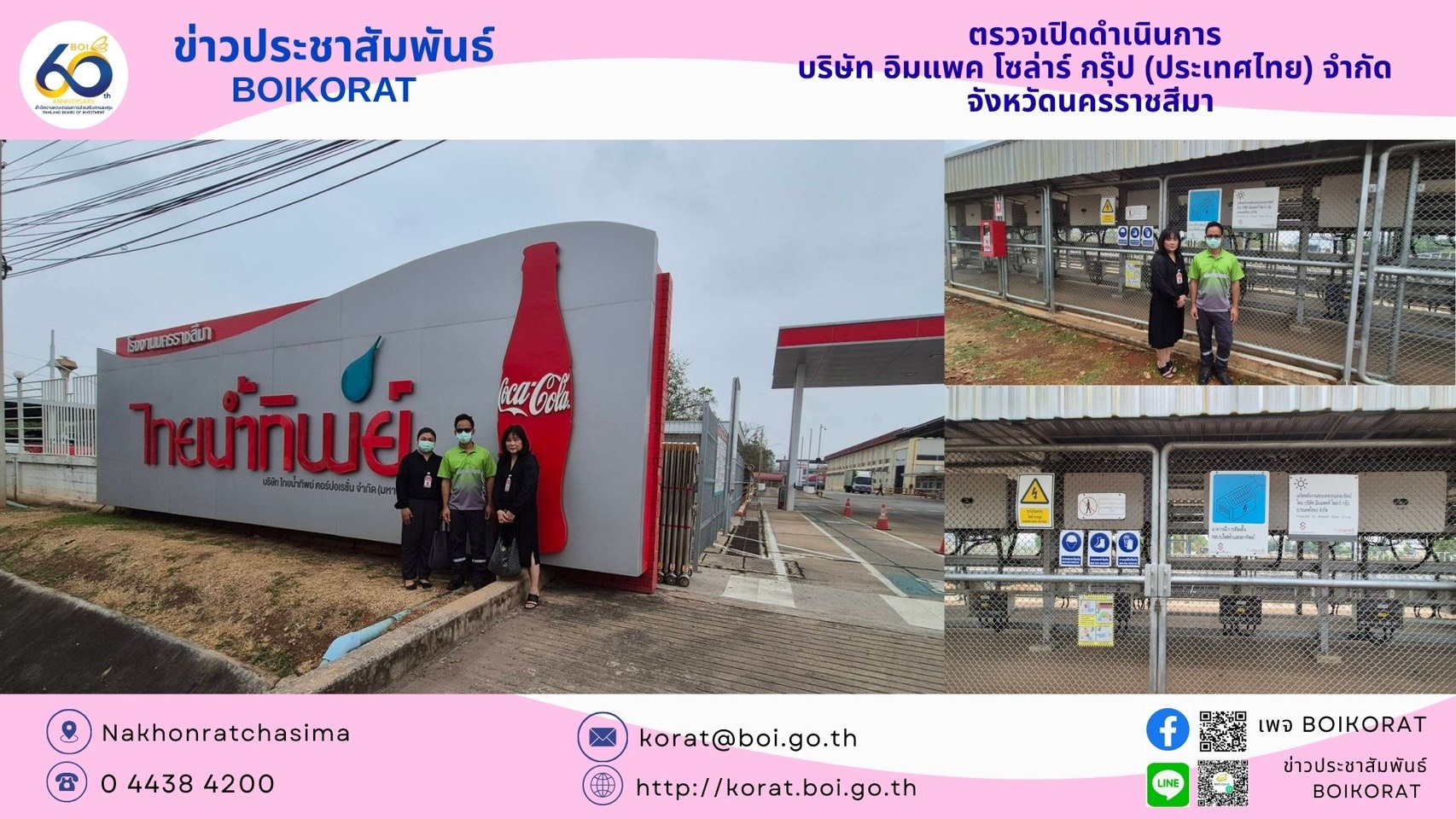 เจ้าหน้าที่ BOIKORAT เข้าตรวจเยี่ยมและตรวจเปิดดำเนินการให้กับ บริษัท อิมแพค โซล่าร์ กรุ๊ป (ประเทศไทย) จำกัด ณ จังหวัดนครราชสีมา