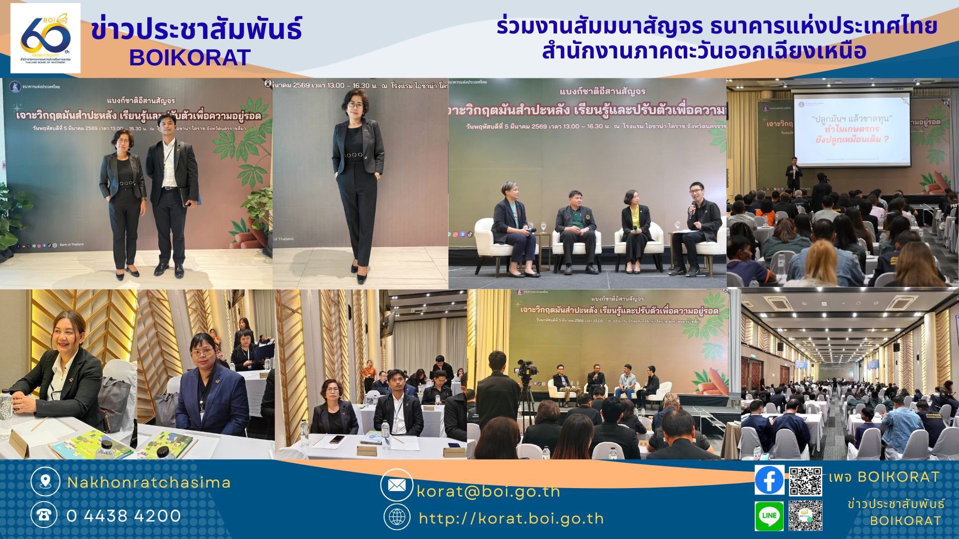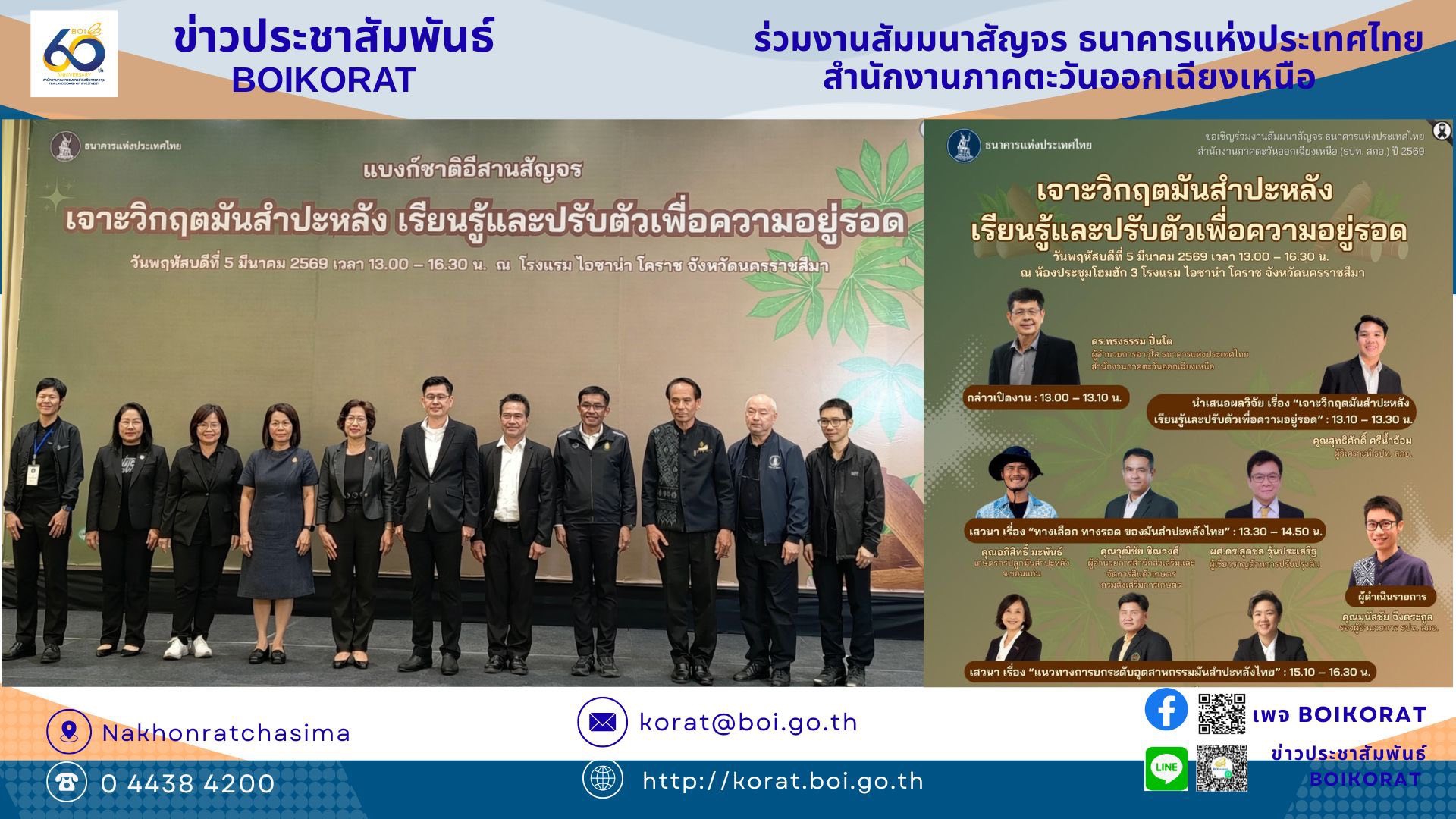 เข้าร่วมงานงานสัมมนาสัญจรประจำปี 2569 ในหัวข้อ “เจาะวิกฤตมันสำปะหลัง เรียนรู้และปรับตัวเพื่อความอยู่รอด” จัดโดยธนาคารแห่งประเทศไทย สำนักงานภาคตะวันออกเฉียงเหนือ และในช่วงเย็นเข้าร่วมงานเลี้ยงขอบคุณจากใจ ณ โรงแรมไอซาน่า โคราช จังหวัดนครราชสีมา